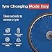 しかし、腕の力を使って押したり、2時~4時あたりに持っていって、上から体重をかけながら押すことができるので、手ではめるよりはるかに楽にタイヤを取り付けることができます。
